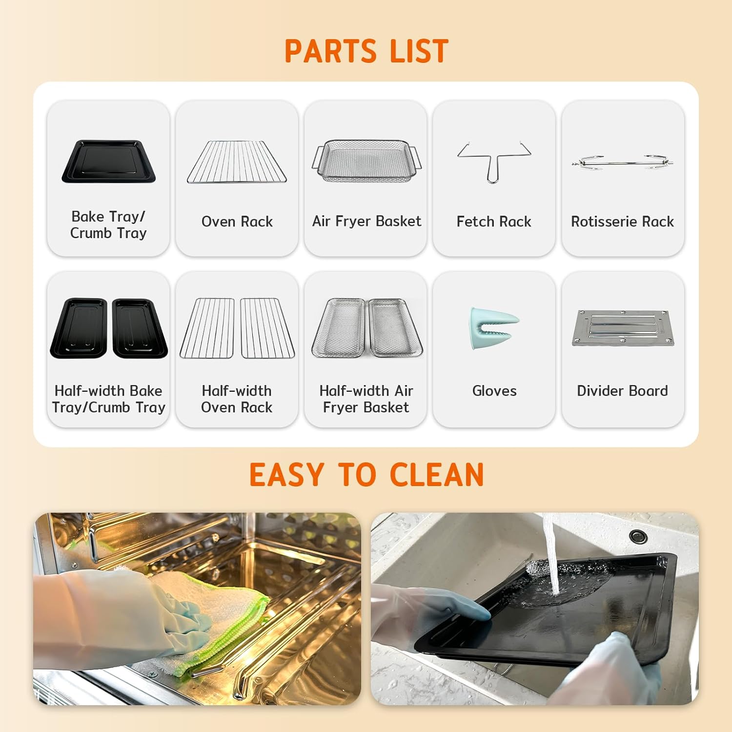 ✔ 13 Premium Accessories (trays, wire rack, crumb tray, rotisserie set, etc.)