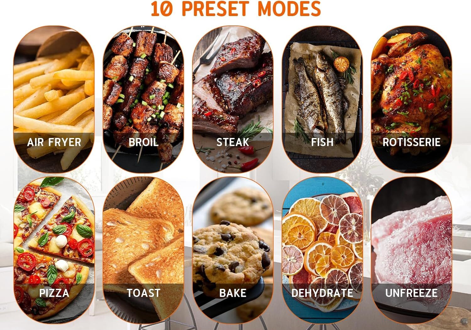 - 10 Smart Preset Modes – Air Fry, Rotisserie, Pizza, Fish, Steak, Bake & more